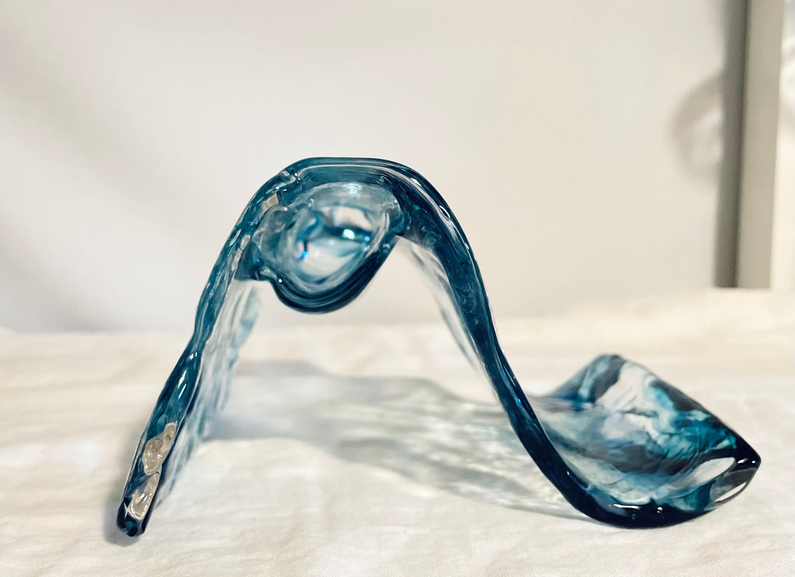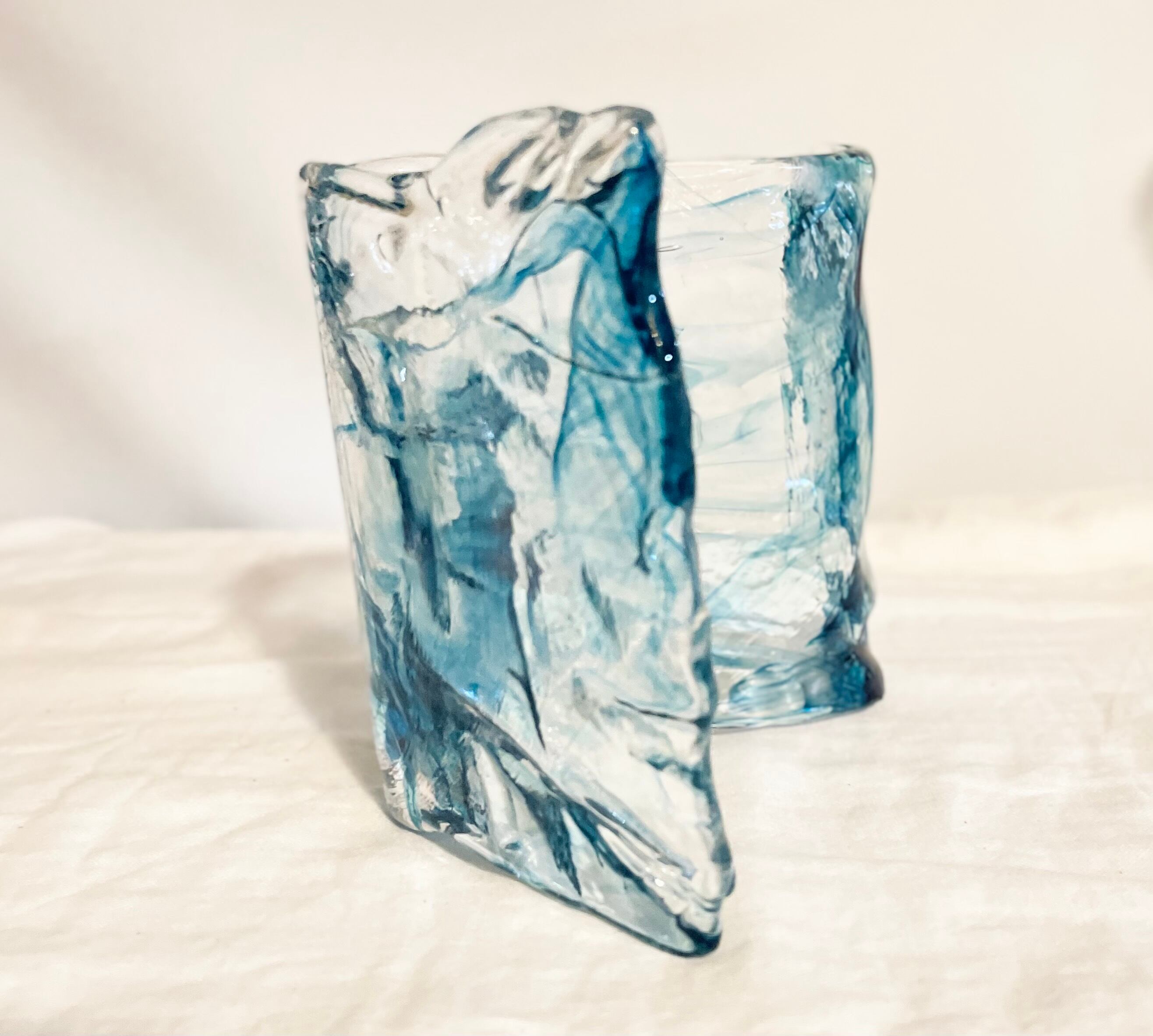 歪みのあるデザインと、紺色とクリアのグラデーションが美しいフラワーベースです。
