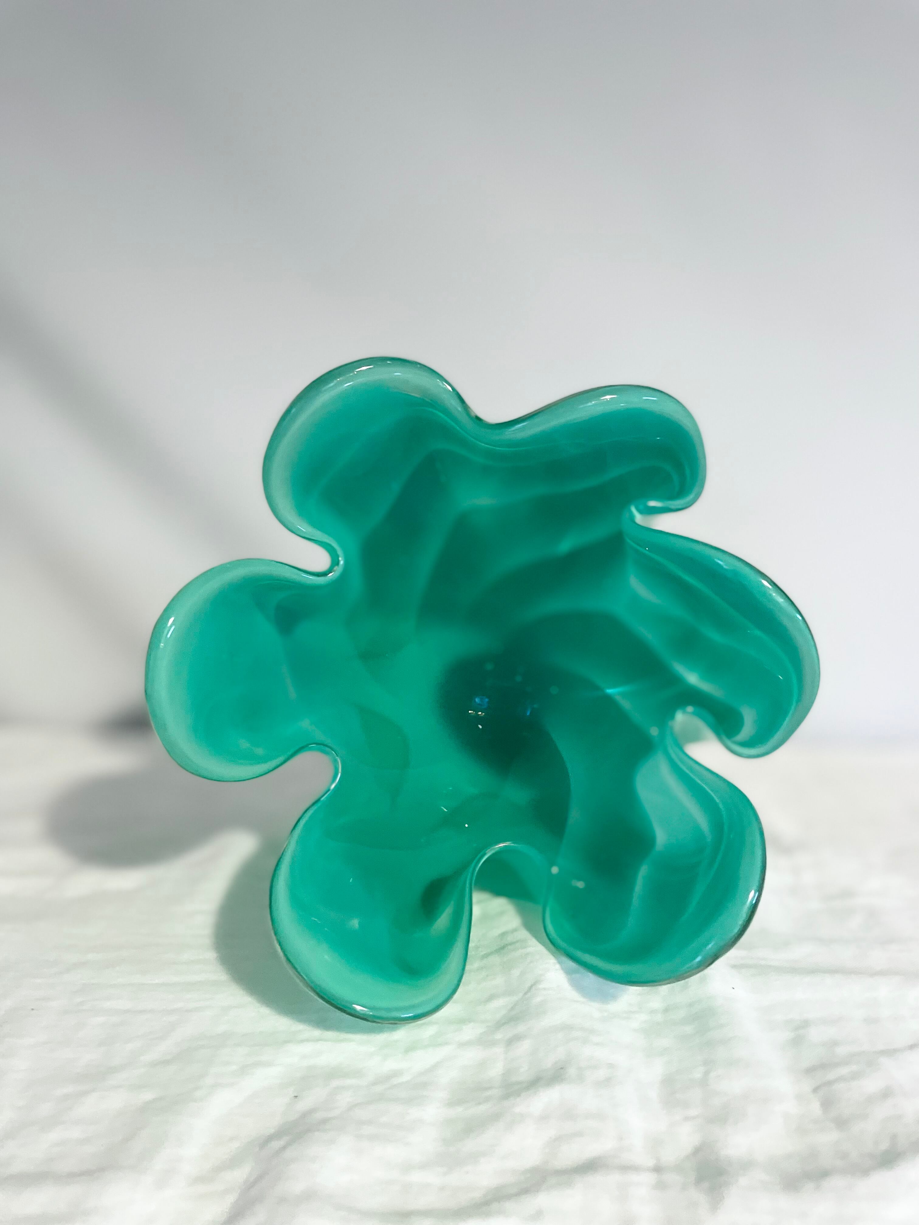 ミントカラーに波打ったようなデザインがとても可愛らしいヴィンテージのフラワーベースです。