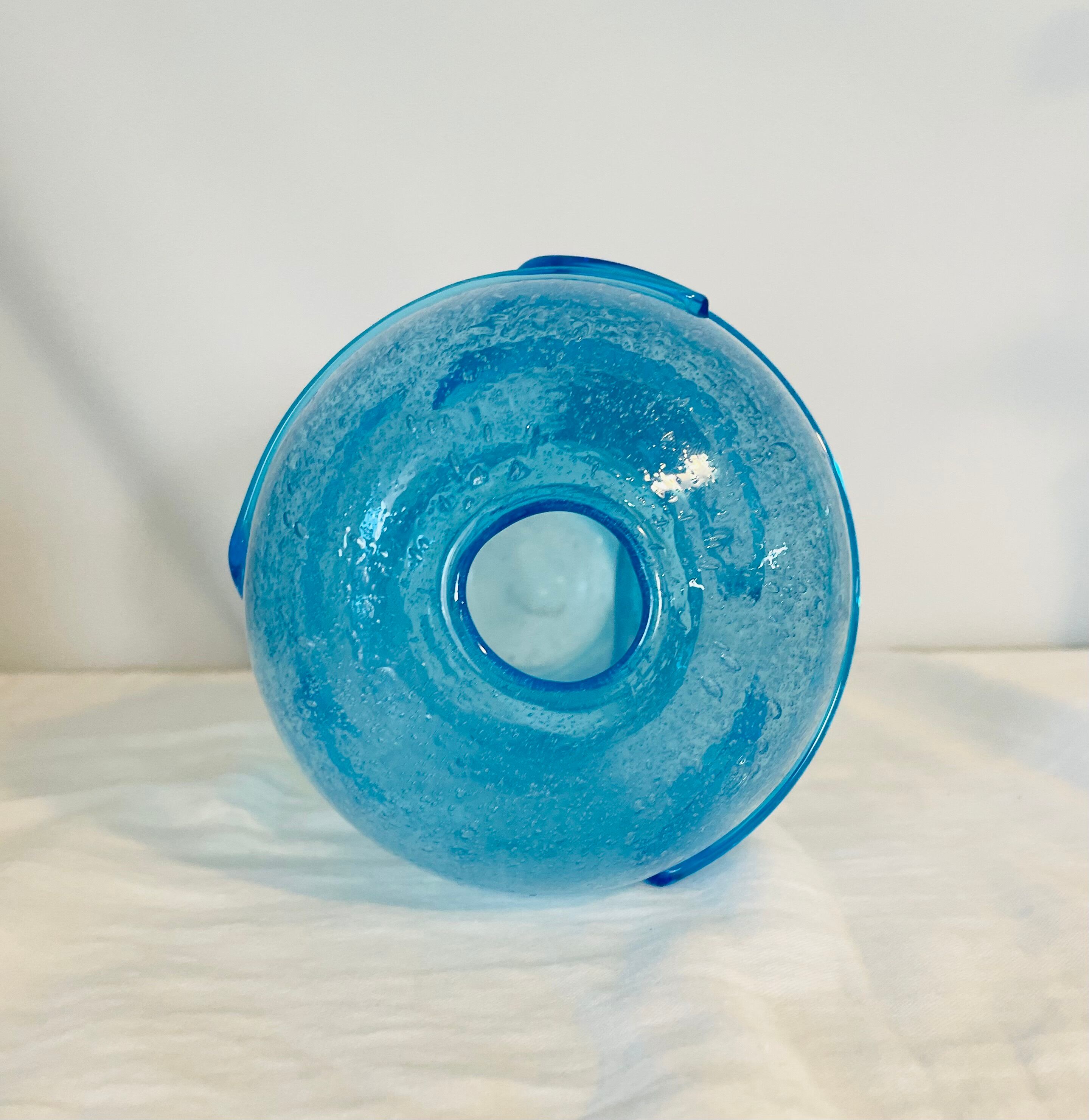 鮮やかな水色ベースに美しいラインアート、そして丸みを帯びたフォルムがとても美しいヴィンテージのフラワーベースです。