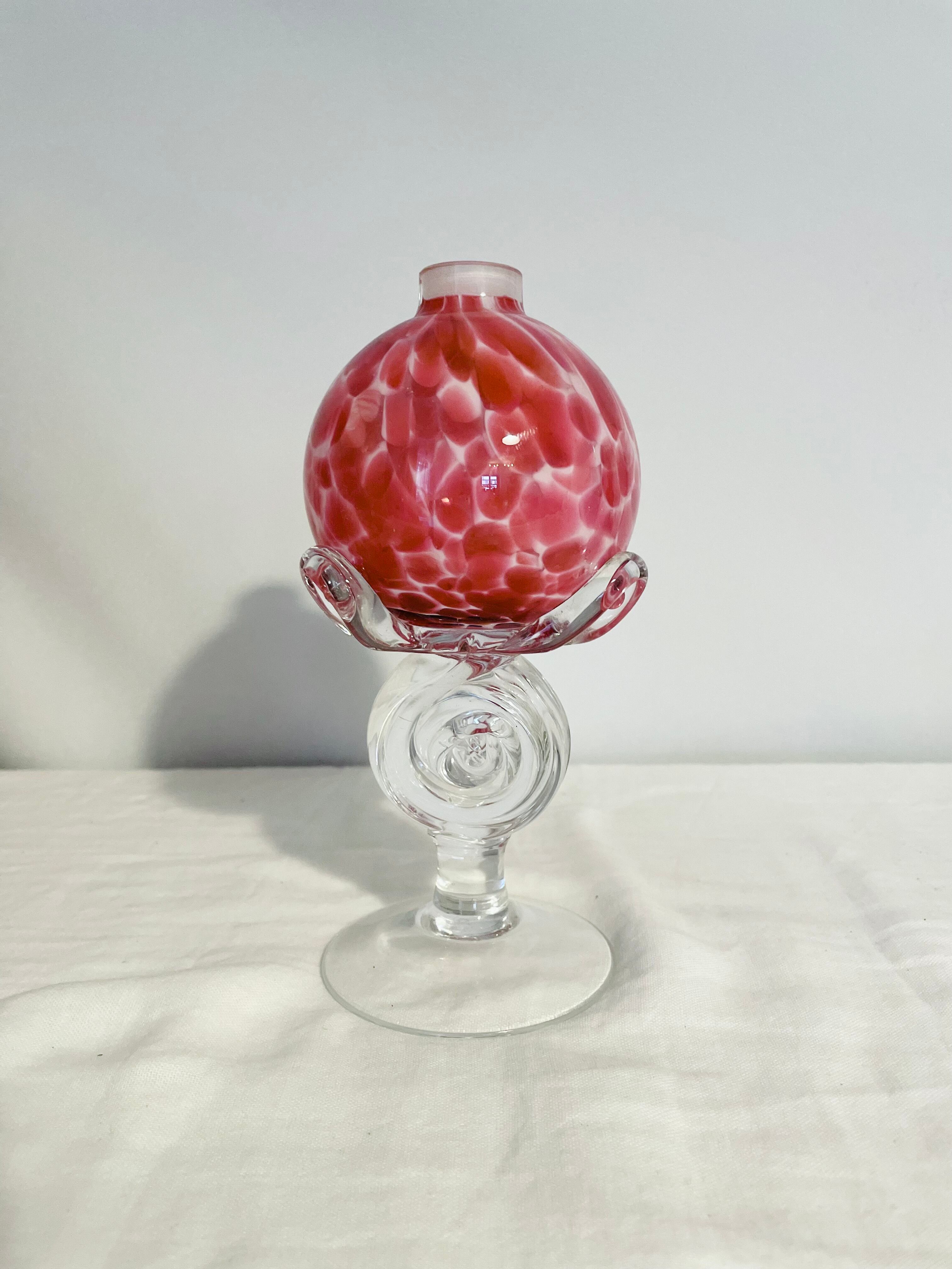 赤色のレオパード柄に独特なフォルムがとても美しく個性的なヴィンテージのフラワーベースです。小ぶりですが存在感のあるおすすめの一品です。